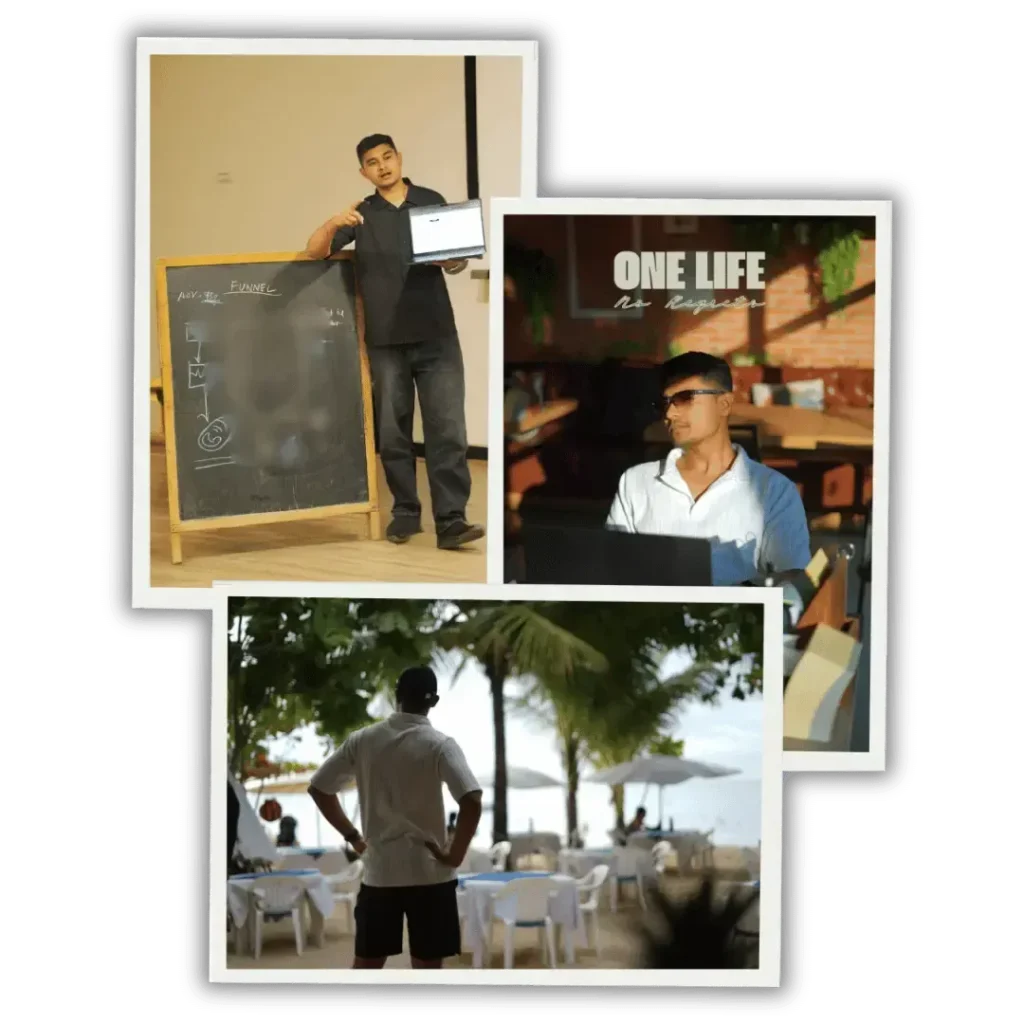 I was working 14 hours everyday trying to figure out how to get clients, wasting money on purchasing online courses. Had 9-10 interns who were constantly cold-outreaching for me trying to get high ticket client appointments when I was posting content endlessly.