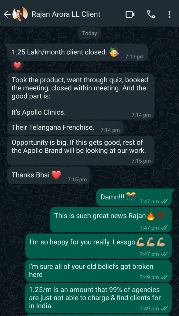 After several years of trial-and-error, testing everything and figuring things out the hard way – without anyone guiding me I finally reached a point where I was getting consistent high ticket appointments every single day & earning more than ₹10 Lakhs/month.