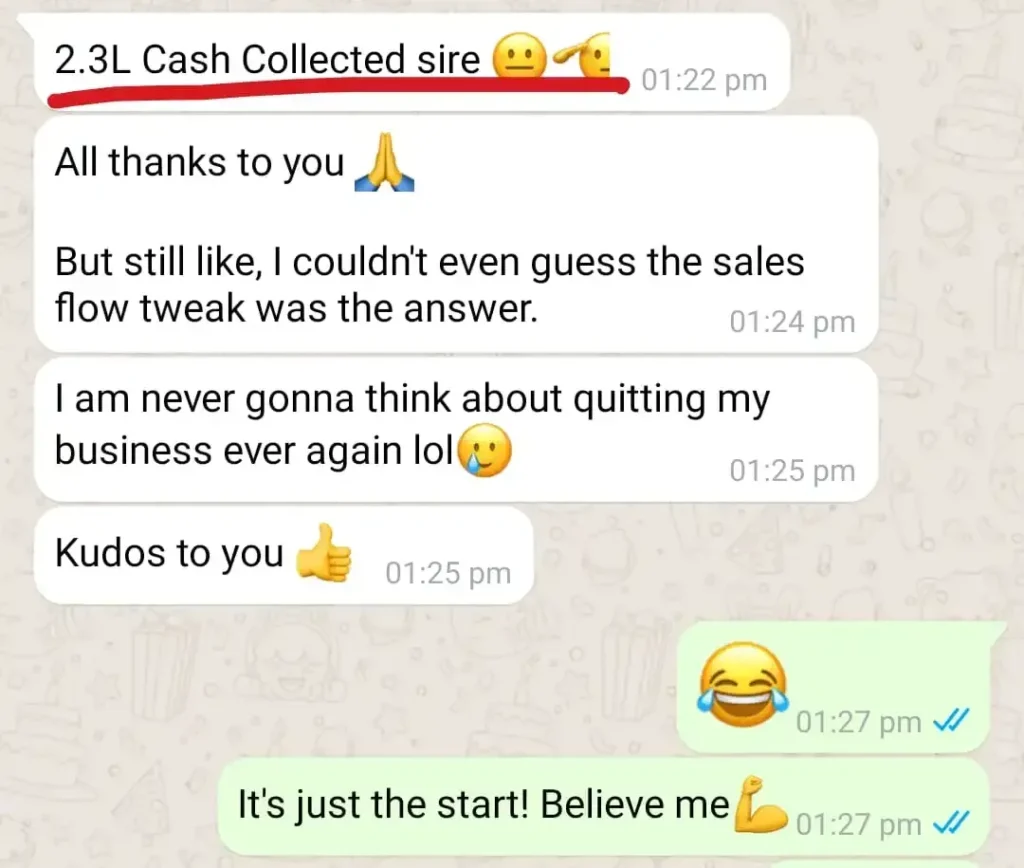 "People were literally paying me just to sit on the sales calls & listen to my pitch haha. 2 premium high ticket clients!!!"